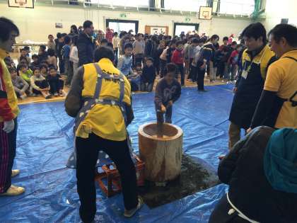 地域の方、PTAの方、総勢80名以上にお手伝いいただいて瀬田小恒例「もちつき」を実施しました。