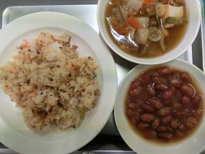 もち米入りそぼろご飯 牛乳 みぞれ汁 煮豆