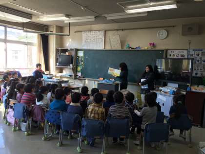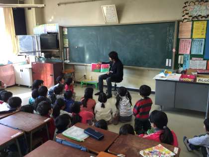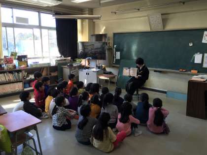 1年生の教室に読み聞かせのボランティアの方が来てくださっていました。