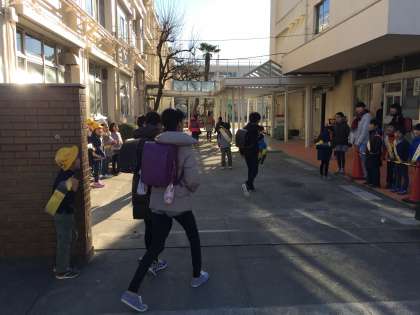 満面の笑顔で、大きな声で明るいあいさつをしています。