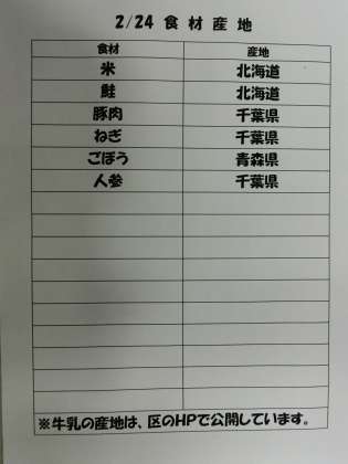 2/24(水) 給食(食材産地)