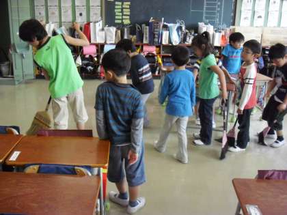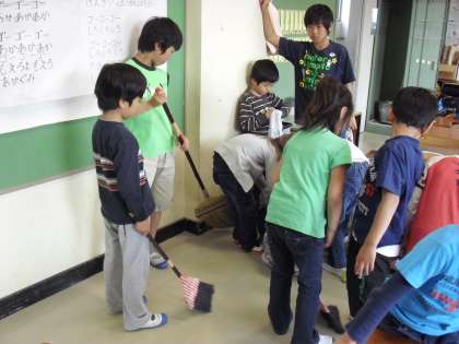 掃除は、6年生に教わりながら、みんなで教室をきれいにするべくがんばっています。