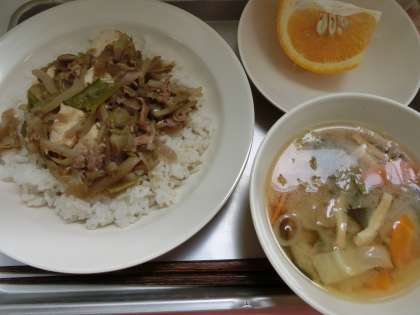 豚丼 牛乳 みそ汁 甘夏