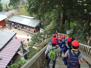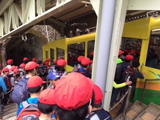 ケーブルカーで下山です。お昼からは曇ってきました。みんな元気です。