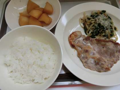 ご飯 牛乳 豚肉の味噌漬け焼き 野菜の乾物和え じゃがいもの甘辛煮