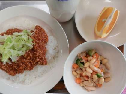 タコライス 牛乳 ビーンズサラダ サンフルーツ