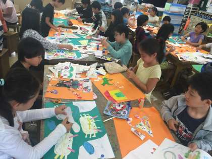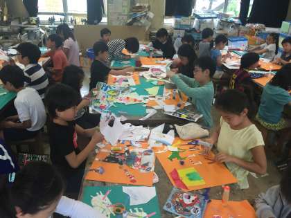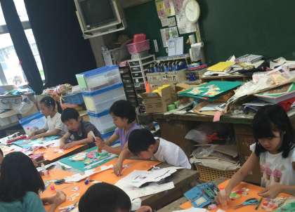自分で絵具を使って、カラフルないろがみを作り、想像上の主人公を描きます。