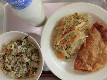 かみかみ高菜ご飯 牛乳 ジャンボ餃子 春雨サラダ
