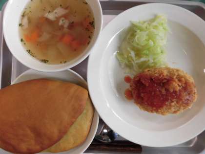 あしたばセルフサンドパン 牛乳 コロッケ 茹でキャベツ コンソメスープ