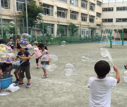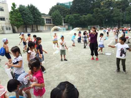 様々な道具を使って、いろいろな種類のシャボン玉を作ります。