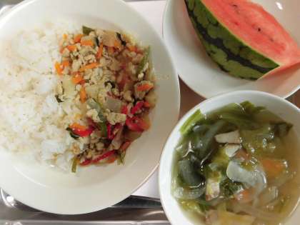 ガパオ風ライス 牛乳 レタススープ すいか