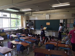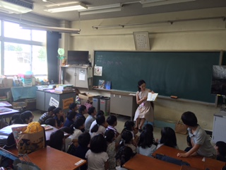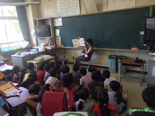 1年生の教室に読み聞かせのボランティアの方が来てくださっていました。