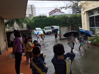 雨の朝ですが、元気のよいあいさつが響いていました。