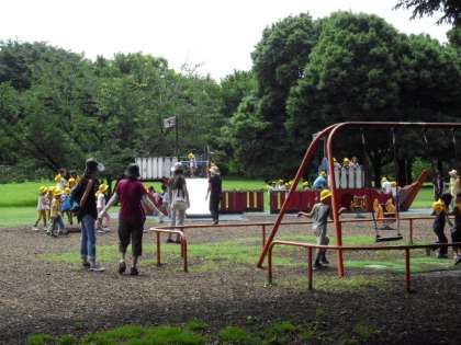 砧公園へは、春にも遠足で出かけているのですが、2回目の今日は、季節が変わって夏の公園の様子がどうなっているのかを見てきました。
