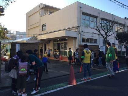 朝からおやじの会の方々が安全指導に来てくださいました。PTAの方々も見回ってくださっていました。