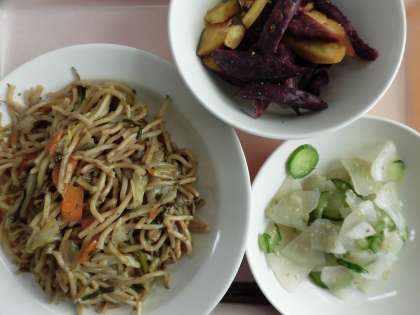 ソース焼きそば 牛乳 きゅうりと大根のごま風味 おさつスティック