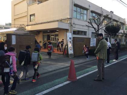 土曜日なので、朝はおやじの会の方やPTAの方が安全指導を行ってくださいました。