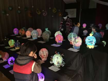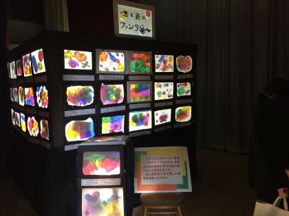 体育館の舞台上には光を活用した作品を展示しました。