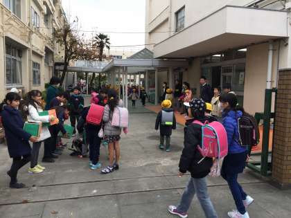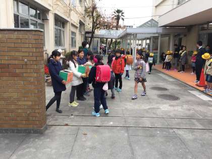あいさつ当番は1・6年生でした。寒さに負けず元気よくあいさつできていました。