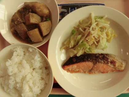ご飯 味付きのり さけの塩麹焼き 野菜のすりごま和え 里芋の甘辛煮