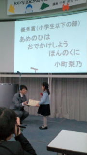 「世田谷区家庭読書の日」標語の表彰式がありました。小学生以下の部に応募した1年生の小町梨乃さんが、優秀賞を取りました。