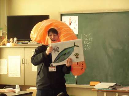 ☆今日は、ぶりの養殖に最適で『日本一の漁場』と呼ばれている、愛媛県愛南町のこだわりの養殖ぶりと、大塚農園さんの瑞々しい大蔵大根を使った、ぶり大根でした。給食時間には、ぶりの納入業者の方が1年生に簡単な説明をしました。休み時間には餌の現物を子どもたちに紹介してくれました。子どもたちは興味津津でした。