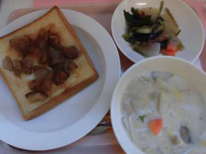 アップルトースト 牛乳 白菜のクリームシチュー 海藻サラダ