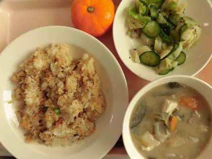 もち米入りそぼろご飯 牛乳 三平汁 ゆかり和え みかん
