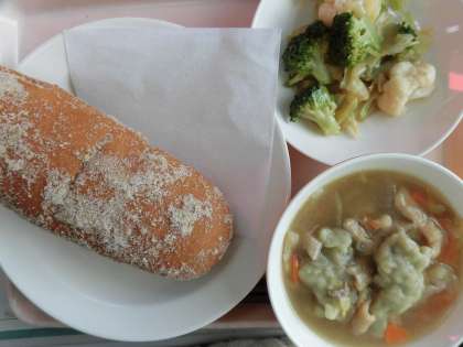 ごま揚げパン 牛乳 明日葉入りすいとん 花野菜の中華和え