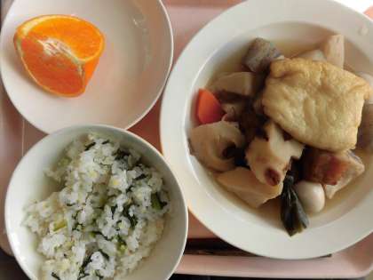 菜花ご飯 牛乳 もち巾着入りおでん 甘平