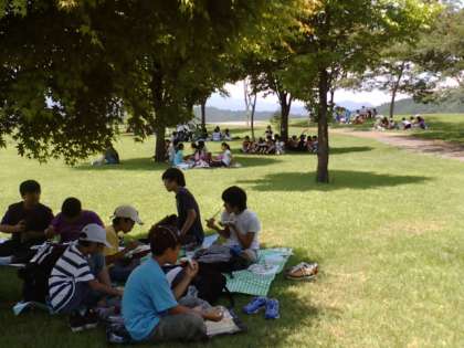 木陰でのんびり昼食です。昼食後は、トンボに夢中です。