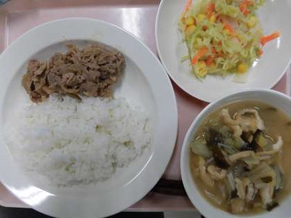 ご飯 牛乳 豚の生姜焼き コールスローサラダ 味噌汁