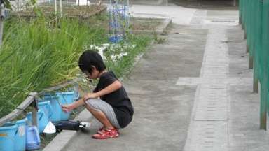担任の呼びかけに応じて、バケツ稲の観察にポツリポツリと5年生が学校に来ています。明日は何人くるでしょうか。