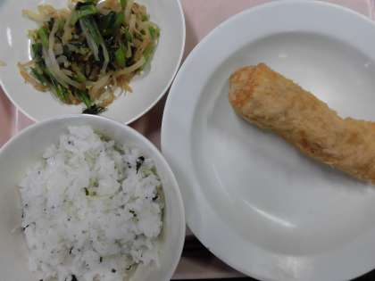 わかめとじゃこのご飯 牛乳 春巻き 野菜のごま風味
