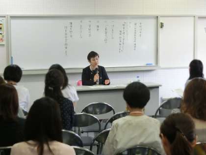 世田谷区学校健康推進課の阿久津様を招いて、「給食は食育推進のための『生きた教材』である」と学校給食の意味などを講演していただきました。
