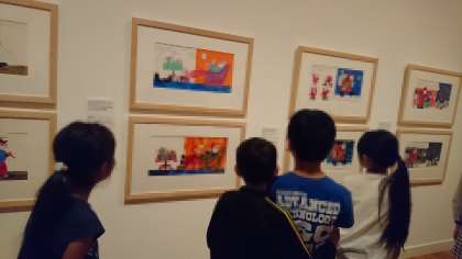班ごとに分かれて鑑賞リーダーの方と館内をまわり、美術館の建物や展示作品を鑑賞しました。