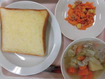ガーリックトースト 牛乳 ポトフ 人参サラダ