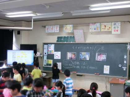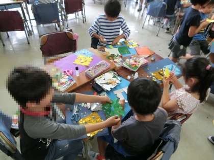 折り紙を何度か折って、切取り、幾何学模様の七夕飾りをつくりました。