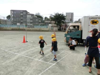 トラックの死角を体験したり、横断歩道を渡るときには右左右を見て、手を挙げ、ドライバーと意思疎通をすることなど、実際に経験をすることで交通安全を学ぶことができました。