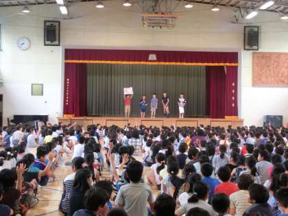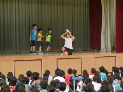体育館で、飼育委員が主となり、報告集会を行いました。