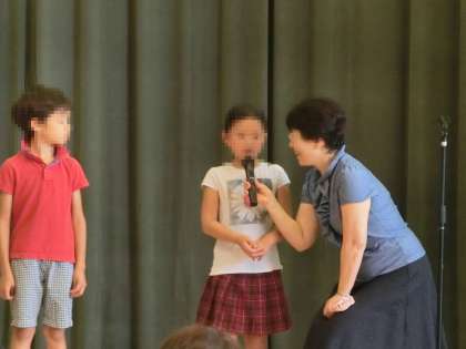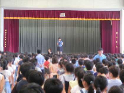 全校朝会では、校長先生のお話の後に、転入生の紹介がありました。