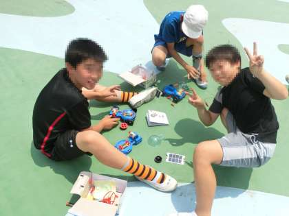 本時では、光電池を使ってモーターを回すために、屋上で実験をしました。