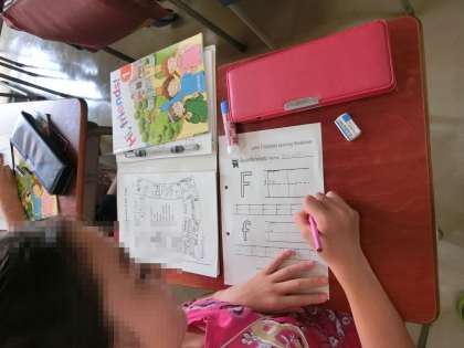 今日は5年生で「I like 〜」の練習をしていました。