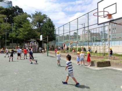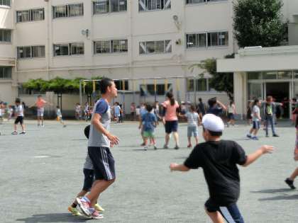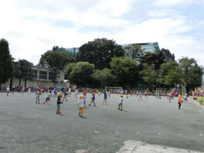 新しい校庭になって、子どもたちは楽しそうに遊んでいます。