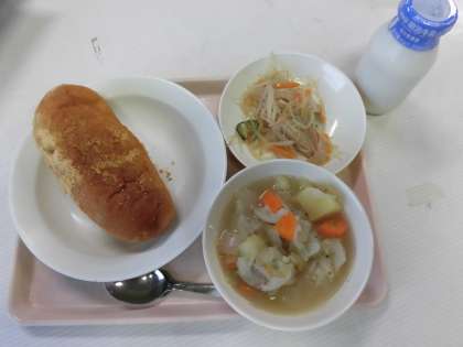 揚げパン 牛乳 ポトフ 春雨サラダ