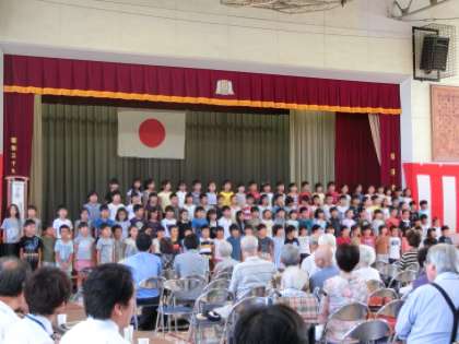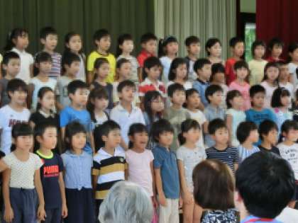 瀬田朝会主催の敬老の集いで、2年生が一生懸命練習した歌や群読を披露しました。
