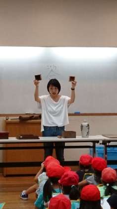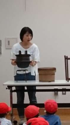 あいにくの空模様の中、代官屋敷、郷土資料館で、昔使われていた道具の説明を聞いたあと、資料館の中を見学しました。