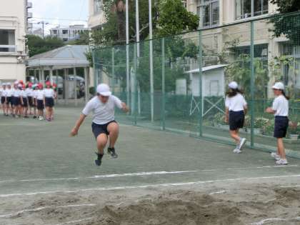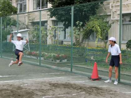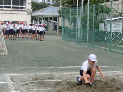 6年生が走り高跳び、走り幅跳び、ハードルを練習しています。