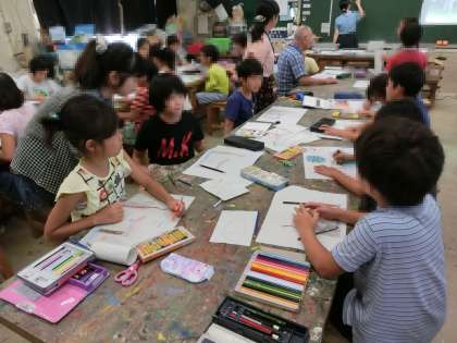 4年1組の図工は世田谷美術館の方々が来校しての出前授業でした。