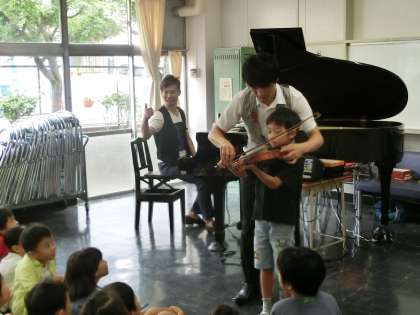 バイオリンに実際にふれて体験をするなど楽しい時間を過ごしました。